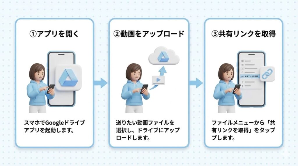 そんなときに便利だったのが Googleドライブを使った動画の共有方法 です。