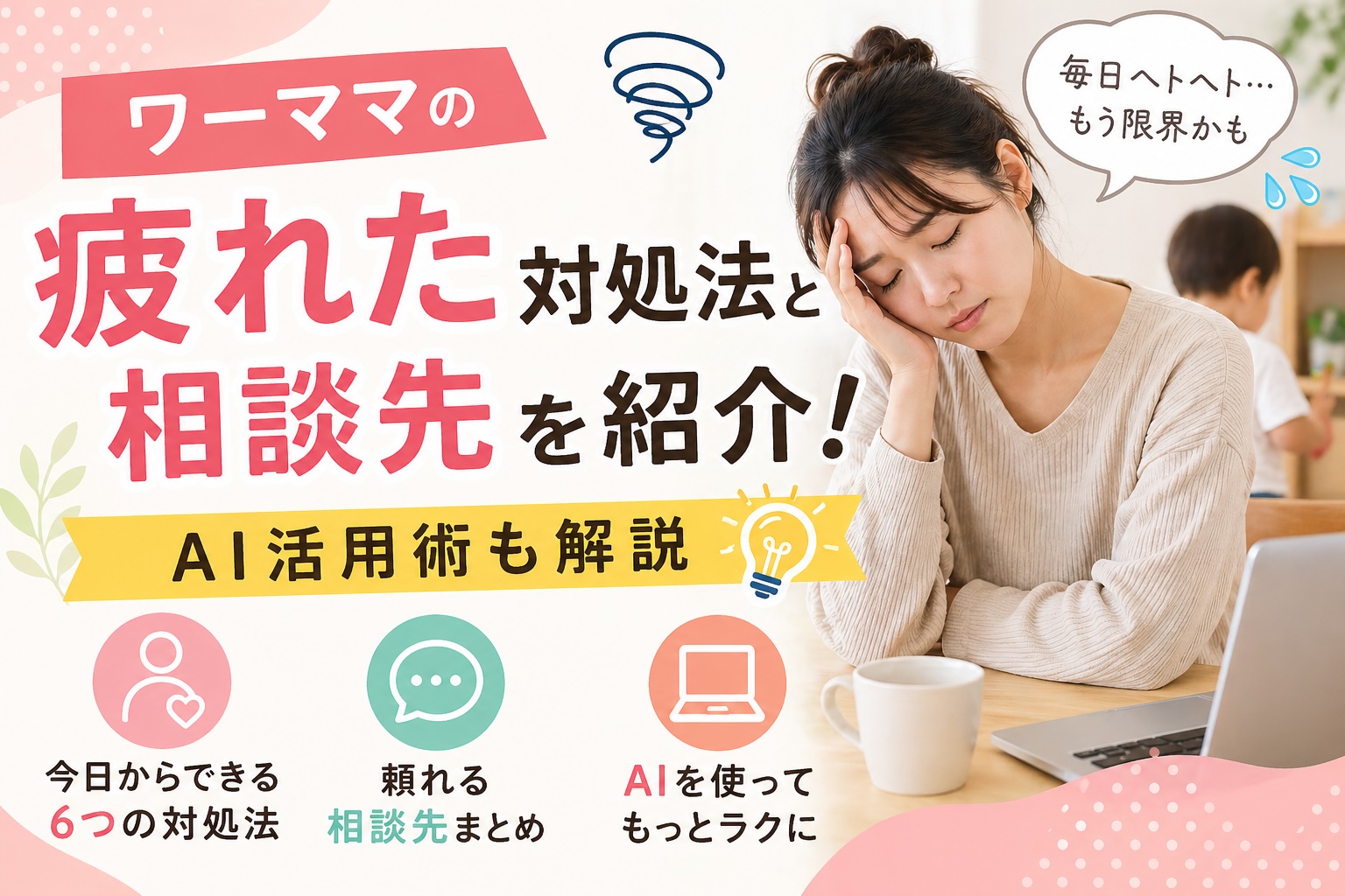 この記事では、ワーママが疲れを感じやすい理由と、今日から試せる6つの対処法と相談先を紹介します。記事を読めば、自分の状態を把握して、負担を軽くする方法がわかります。